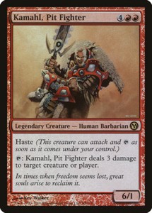 Haste (this creature can attack and {t} as soon as it comes under your control.) Card price last updated on 01 mar. When you purchase through links on our site, we may earn an affiliate commission. In times when freedom seems lost, great souls arise to reclaim it. Kamahl, pit fighter deals 3 damage to target creature or player.